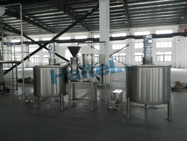 Mixing cistern, pump, colloid mill, storage silo, pump, rice cereal piece drum drying machine, hoister, rice cereal piece forming machine.
